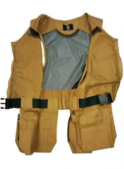 This vest combines lightweight comfort with durability. The inside belt snaps and shoulders padding help eliminate weight and stress on your shoulders, while the durable, breathable mesh on the back allows for easy air circulation and comfort.